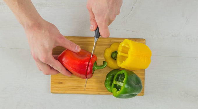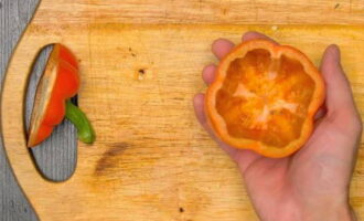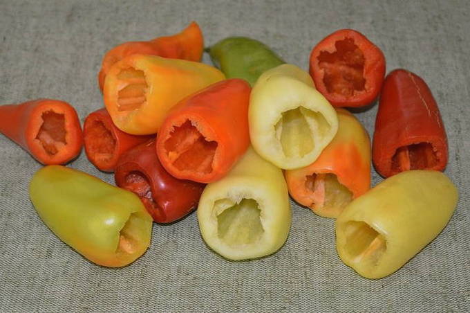 - Snijd de paprika's af met een steel, verwijder de zaadjes.