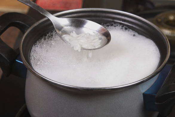 - Giet de rijst met water en breng op het vuur tot het half gaar is.