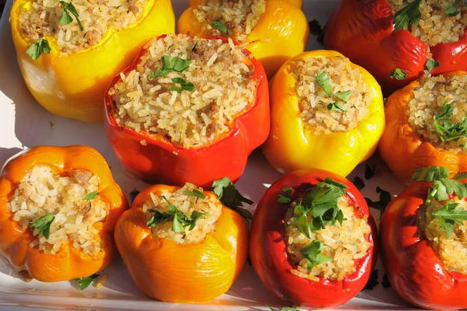 Paprika gevuld met rijstgrutten en gehakt is een variatie op de populaire gevulde koolrolletjes, maar peper geeft dit gerecht een meer pikante en delicate smaak. Gevulde paprika's worden gekookt met andere groenten, in tomaten- of zure roomsaus. Heerlijk, helder en aromatisch gerecht.