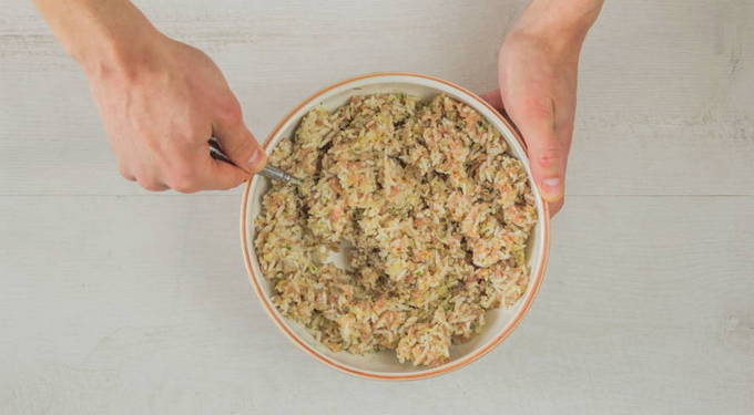 - Meng rijst met gehakt en zout.