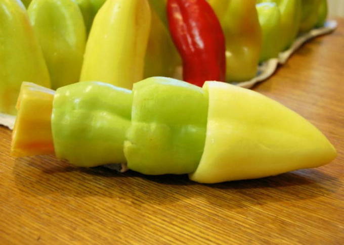 De peper wordt gewassen, het deksel wordt van de groente gescheiden, de zaden en interne scheidingswanden worden verwijderd.