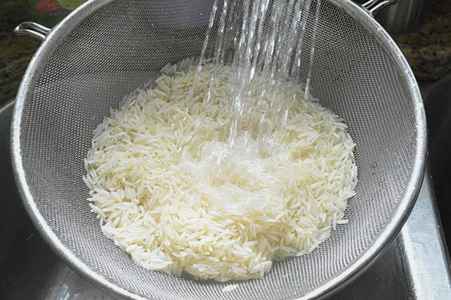 - Rijst wordt gewassen en ongeveer 7 minuten gekookt - tot het half gaar is.