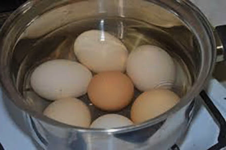 - Doe de kippeneieren in een pan, bedek ze met water en kook ze gaar.