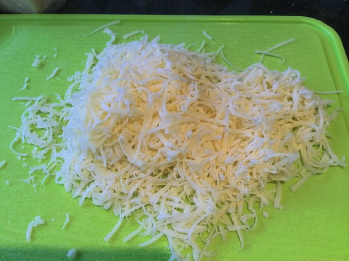 - Rasp de kaas op een fijne rasp.