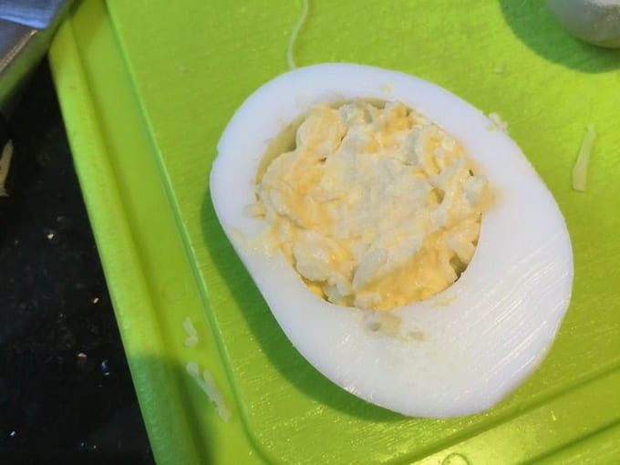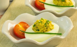 - Vul de eiwithelften met de vulling.