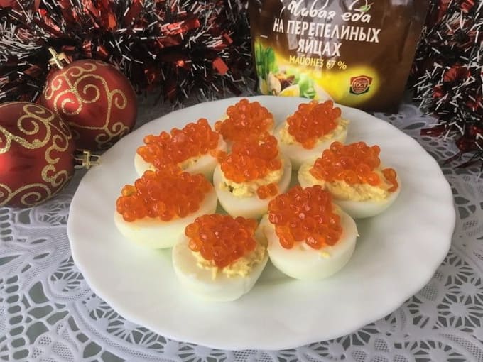- Heldere en smakelijke eieren gevuld met rode kaviaar