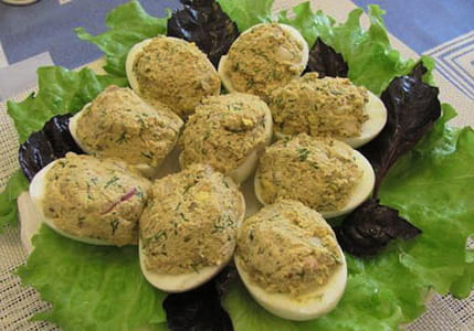 Zijn er veel lekkere snacks die ook nog eens makkelijk en snel te bereiden zijn? Gevulde eieren zijn zo'n snack. Dit gerecht is eenvoudig en gevarieerd; je kunt elke vulling naar eigen smaak maken. We hebben 10 van de meest originele recepten voor gevulde eieren geselecteerd.