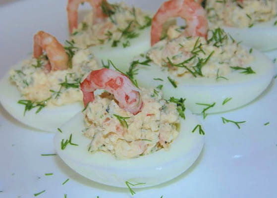 - Origineel voorgerecht van eieren gevuld met garnalen
