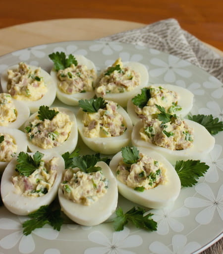 - Snack van eieren gevuld met ingeblikte vis