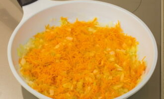 Bak de uien in plantaardige olie tot ze glazig zijn en voeg dan de wortelen toe.