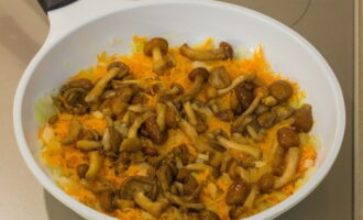 Voeg na een paar minuten de champignons toe en bak nog 20-25 minuten mee. Kruid en breng op het einde op smaak.