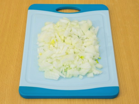 - Snijd de gezouten haring in kleine blokjes.