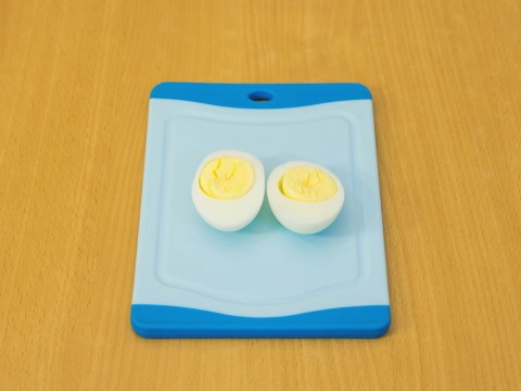 - Snijd de eieren doormidden, verwijder de dooiers.