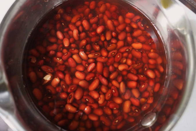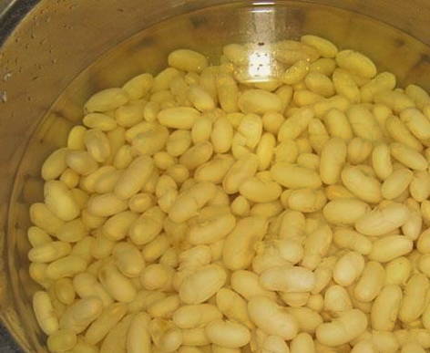 - De bonen moeten minimaal 8 uur in koud water worden geweekt, daarna de bonen met vers water vullen en ongeveer een uur koken, zodat de bonen zacht worden, maar niet koken.