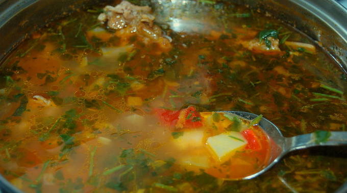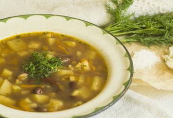 - Breng de soep op smaak, voeg de benodigde hoeveelheid zout en peper toe, dek af en kook ongeveer 5 minuten, en laat dan nog eens 15 minuten verzadigen met de aroma's. Serveer bestrooid met fijngehakte kruiden.