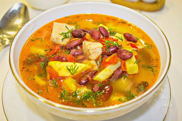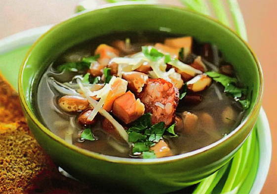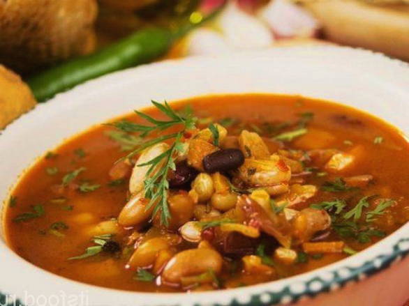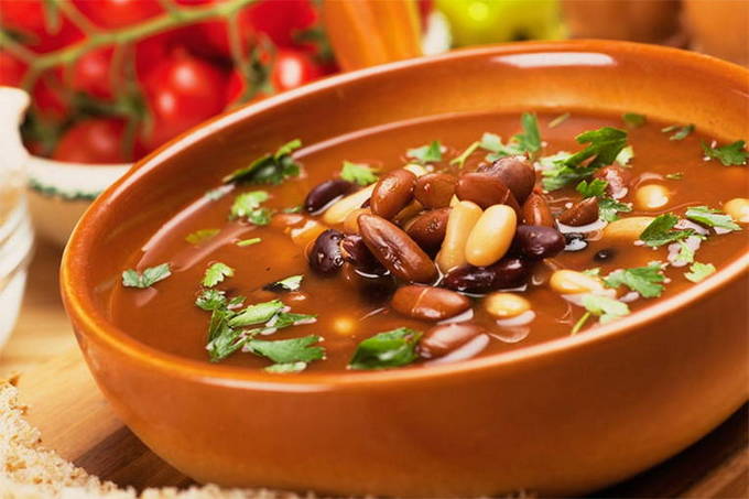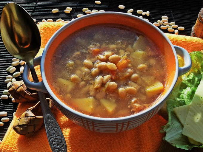 Dikke en rijke soep gemaakt van bonen verwarmt je bij koud weer en geeft je kracht. Om het gerecht wat pittiger van smaak te maken, kun je er een beetje Tabascosaus aan toevoegen.