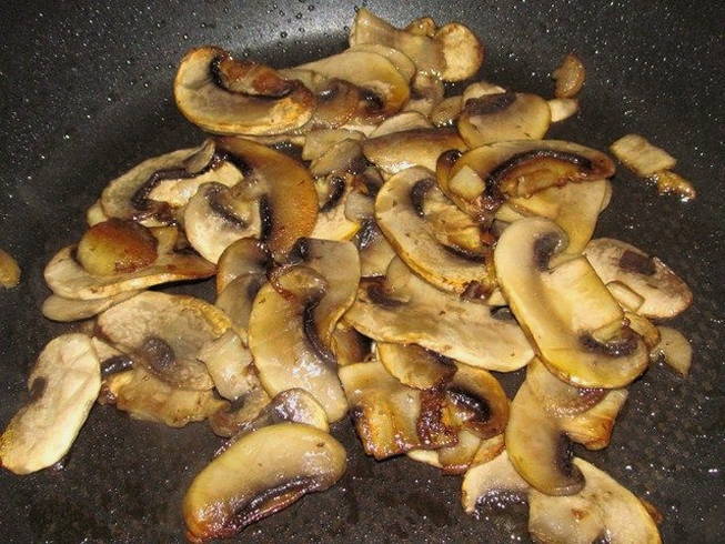 - De champignons worden in plakjes gesneden en in hete boter 15 minuten gekookt tot ze bruin zijn.