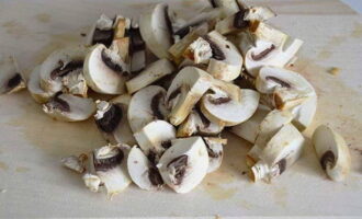 Snijd de champignons in kleine partjes.