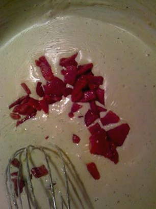 - Schil de ham en hak fijn. Bak het in olijfolie licht goudbruin. Gebruik vervolgens een schuimspaan om de ham uit de pan te scheppen.
