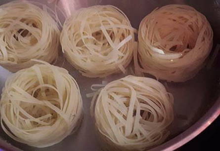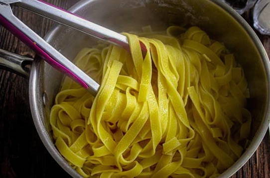 - Kook de fettuccine volgens de instructies op de verpakking.