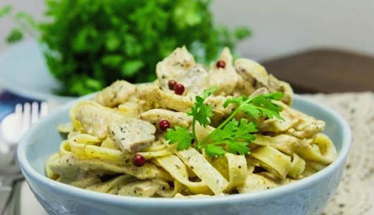 - Fettuccine met kipfilet in een romige saus