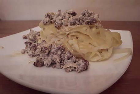 - Schik de fettuccine op de borden, voeg de romige gehaktsaus toe en serveer.