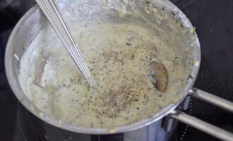 - Voeg vervolgens de room toe, breng de saus aan de kook, breng op smaak met zout en breng op smaak, roer en haal van het vuur.