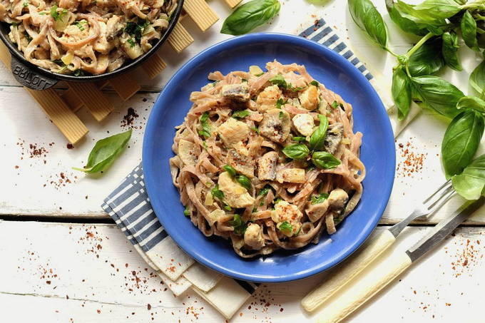 - Fettuccine met kip en champignons thuis