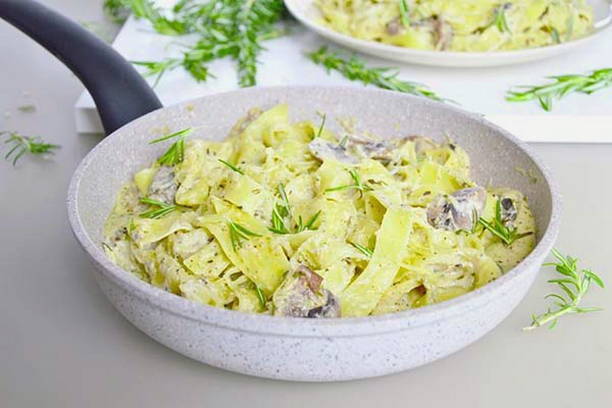 Fettuccine met champignons in een romige saus