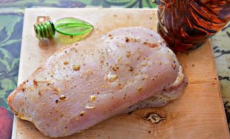 Kalkoendijfilet gemarineerd met sojasaus wordt mals, sappig en smelt in de mond. Hiervoor is het echter beter om het vlees ongeveer een dag in de marinade te bewaren, houd hier dus rekening mee voor het koken, begin alvast met koken.