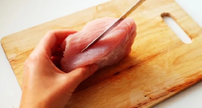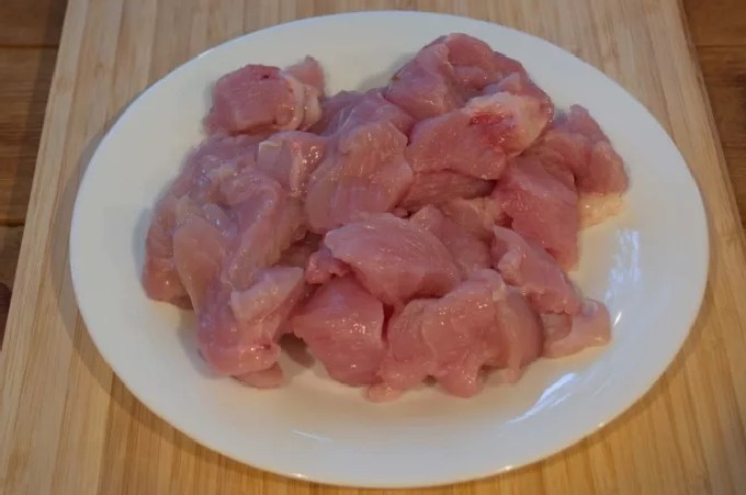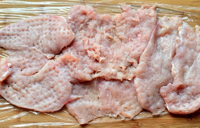 - Spoel de kalkoenfilet af en snij in stukken (u kunt kant-en-klare medaillons kopen).
