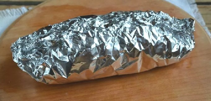 - Als je een gouden korst nodig hebt, dan in 5-10 minuten. tot het einde van het bakken, vouw de folie open en laat het vlees bruin worden.