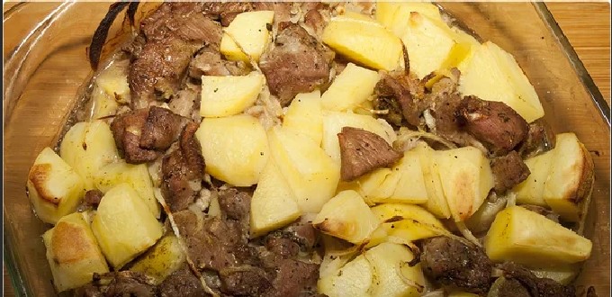 - Verwarm de oven voor op standaard 180 graden, plaats de schaal met de inhoud daar. 1 uur koken, dan de folie verwijderen, vlees en aardappelen controleren op gaarheid en nog 20 minuten in de oven laten zodat het vlees bruin wordt en de aardappelen een mooie korst krijgen.