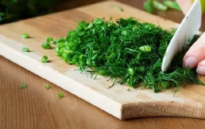 - Rasp de kaas op een fijne rasp, meng met mayonaise of zure room, voeg fijngehakte dille toe.