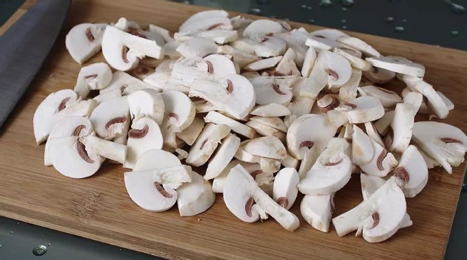 - Snijd de champignons in dunne plakjes of blokjes.