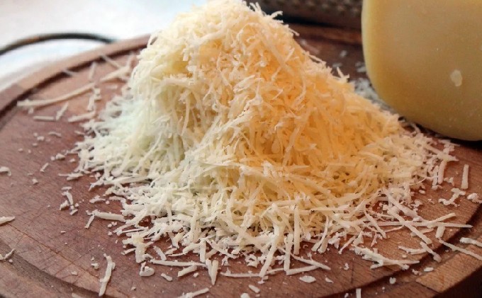 - Rasp de kaas op een middelgrote rasp, strooi het op de kalkoenboten (bewaar de kaas niet).