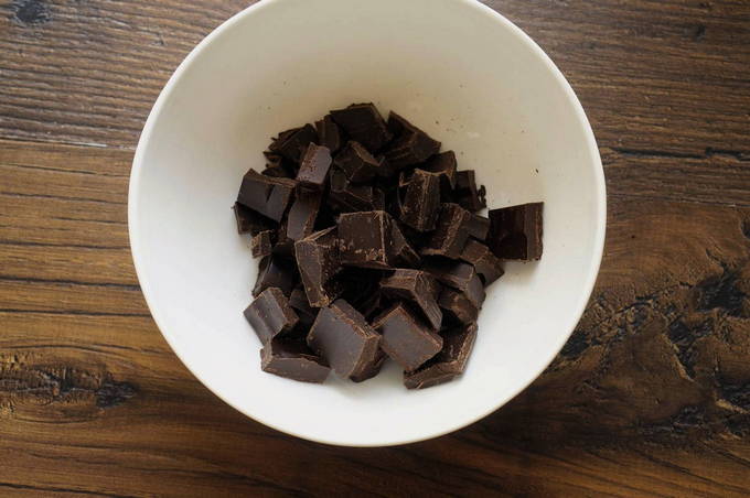 - Breek de chocolade in stukjes en smelt in een waterbad.