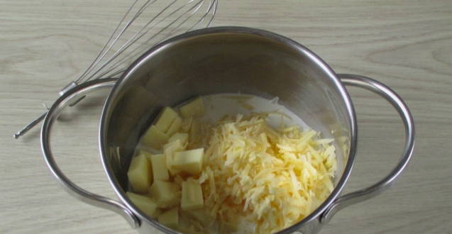 - Voeg kaas toe aan een pan, zet op het vuur en verwarm tot de kaas is gesmolten.