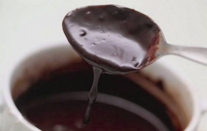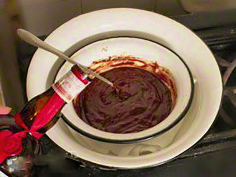 - Nadat de chocolade en room zijn veranderd in een homogene massa, voeg een beetje likeur toe, roer.
