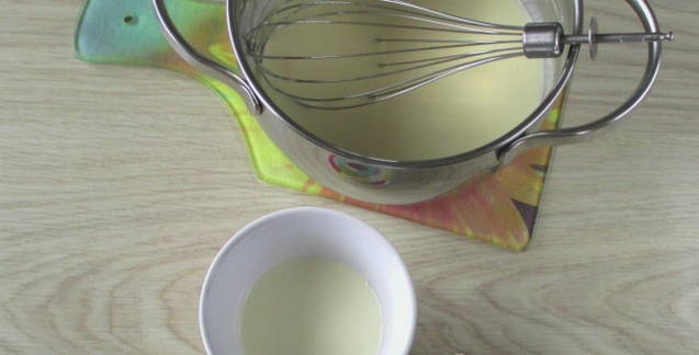 - Meng een paar eetlepels room met de dooier, giet de rest in een pan.