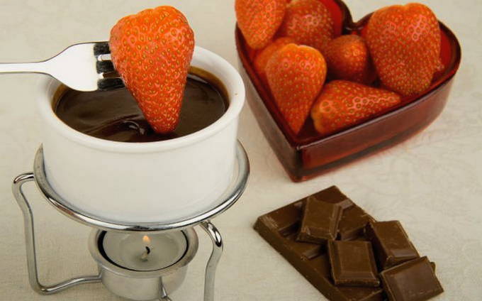 Volgens de reeds gevestigde klassieke traditie wordt chocoladefondue geserveerd met verse aardbeien. Deze combinatie ziet er erg mooi en indrukwekkend uit. Met zo'n dessert kun je een aangename verrassing regelen voor je dierbare.