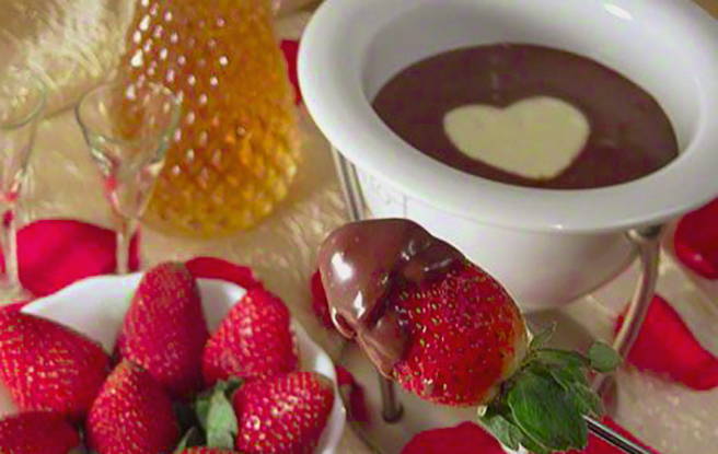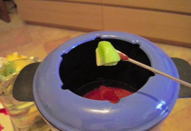 - Giet de fondue in een fondueschaal en serveer met het fruit.