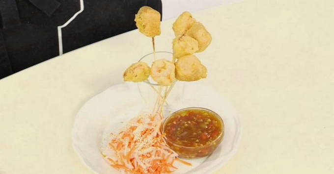 - Combineer zoete chilisaus, vissaus, gehakte koriander en knoflook.