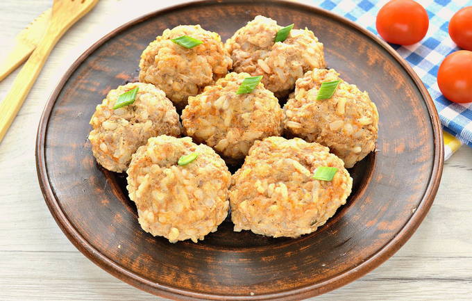 Hoe sappige kippengehaktballetjes met rijst in de oven koken?