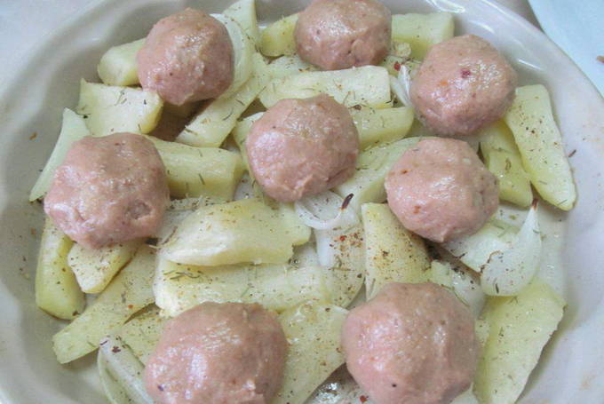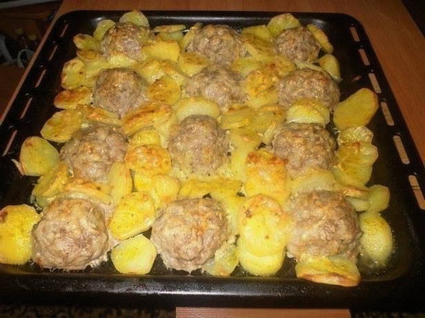 Hoe sappige en malse gehaktballen met aardappelen in de oven bakken?