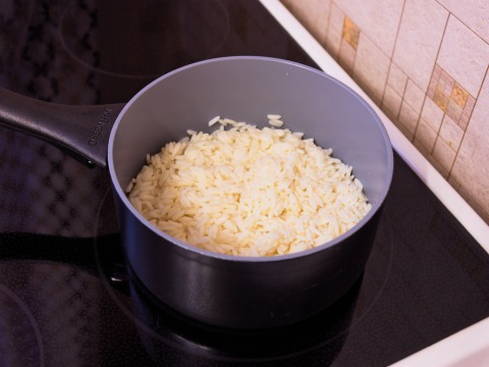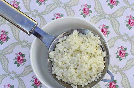 - Kook de rijst gaar en vouw hem dan op een zeef.