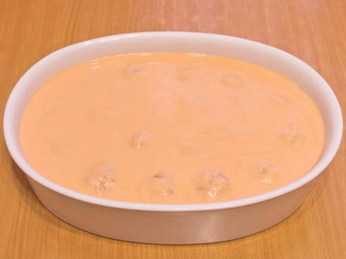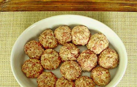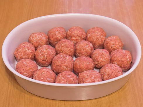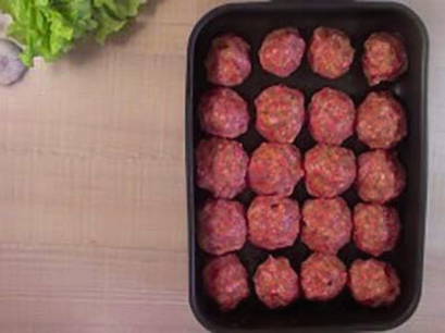 - Maak ronde gehaktballetjes van gehakt, leg ze in een hittebestendige vorm.