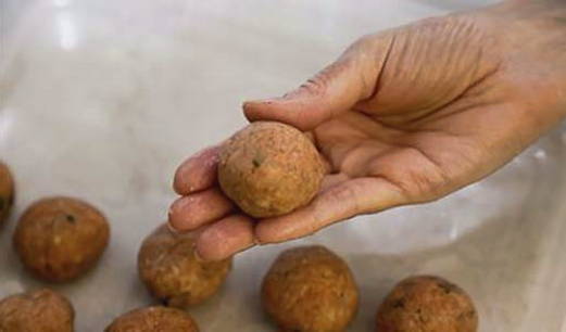 Maak kleine gehaktballetjes van gehakt, niet groter dan een walnoot.