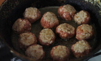 Giet plantaardige olie in een voorverwarmde pan en bak de gehaktballen 5-7 minuten aan elke kant.