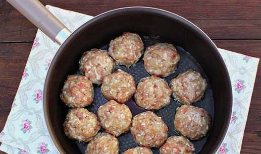 - Week je handen in water en vorm er ronde gehaktballen van. Bak ze in plantaardige olie tot ze goudbruin zijn, 2-3 minuten aan elke kant.